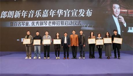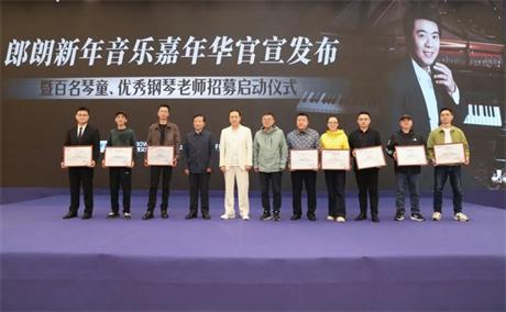 主持人现场宣读琴童选拔章程。郎朗团队代表欧阳世家董事长、鼎校教育科技联合创始人吴曼绮、巢湖学院王程博士、安徽艺术学院徐静雅博士、安庆师范大学王晨宇博士、宋盛启博士、刘天庾博士分别为60位音乐教育家颁发评委聘书。