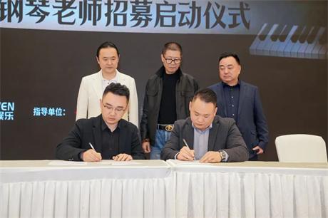 在安徽省钢琴协会秘书长李彪、郎朗团队代表( 郎舅)周兴叶、朗之音文化发展董事长陈平保的共同见证下,朗之音文化发展总经理赵鹏飞与各承办点进行协议签订仪式。