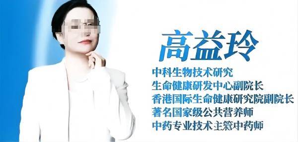 在《港岛传奇》栏目画面中,主讲人高益玲气场十足,屏幕上标注的头衔令人咋舌——“中科生物技术研究生命健康研发中心副院长”“香港国际生命健康研究院副院长”“国家级公共营养师”“主管中药师”。