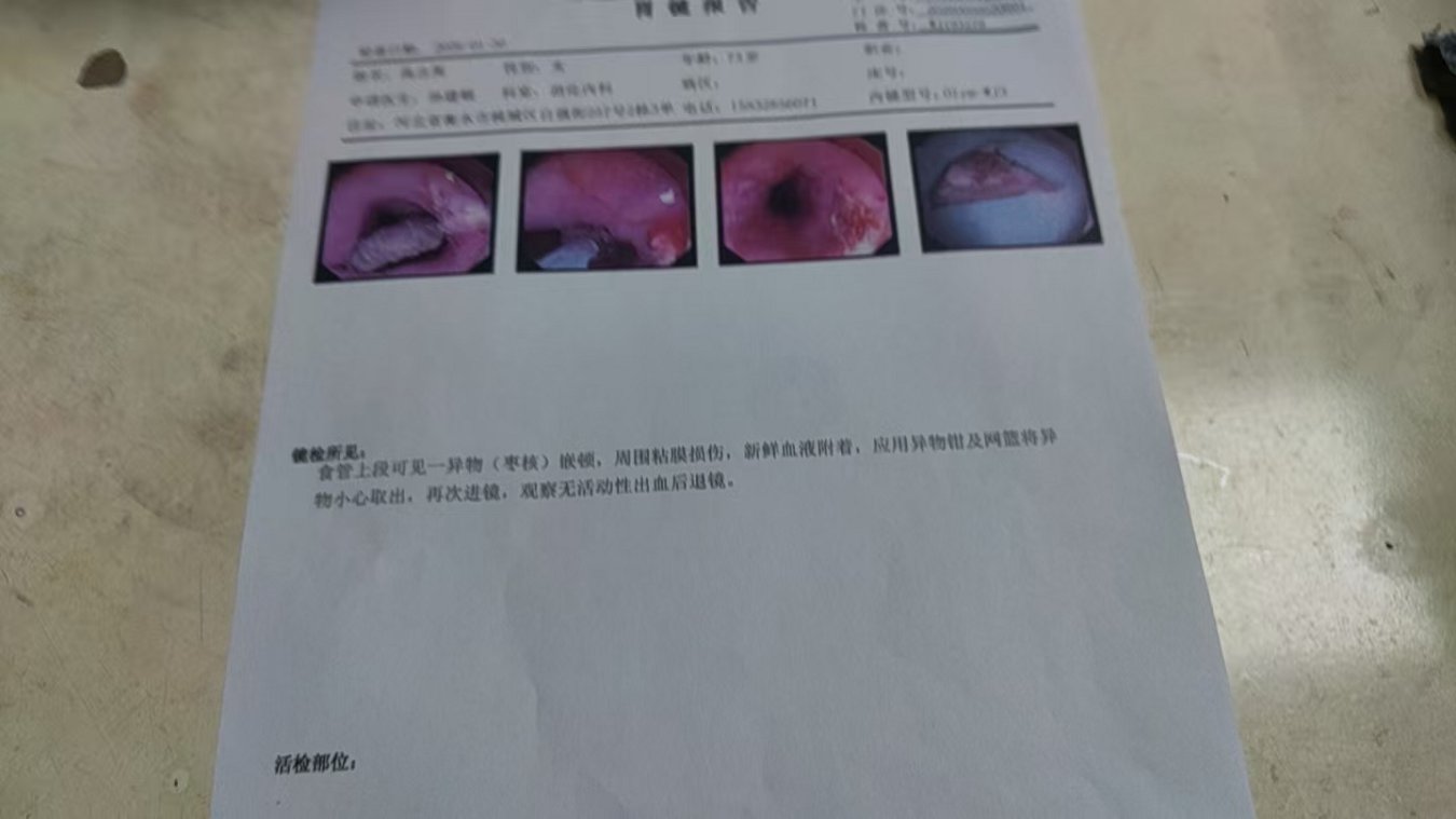 随后,高女士前往衡水市人民医院就诊,经胃镜操作顺利将枣核取出。该院胃镜报告显示:食管上段可见一异物(枣核)嵌顿,周围黏膜损伤,新鲜血液附着,应用异物钳及网篮将异物取出,观察无活动性出血后退镜。