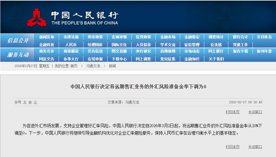 2026年2月27日,中国人民银行将远期售汇业务外汇风险准备金率从20%下调至0,这一“归零”式调整,不仅是对企业汇率避险成本的直接减负,更是我国外汇市场从“约束管理”向“激活活力”转型的重要标志,折射出宏观调控思路的深刻转变。