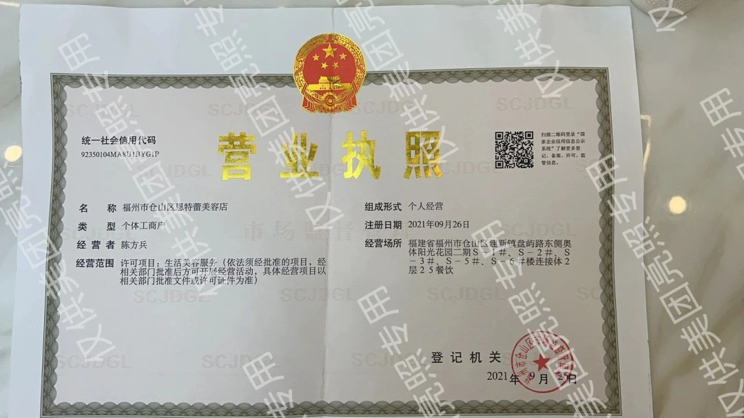此类破皮操作通常属于医疗美容范畴,但记者随机查询了多家蕾特恩门店的经营范围均只有“生活美容服务”,暗访的几家门店内也未公示《医疗机构执业许可证》。
