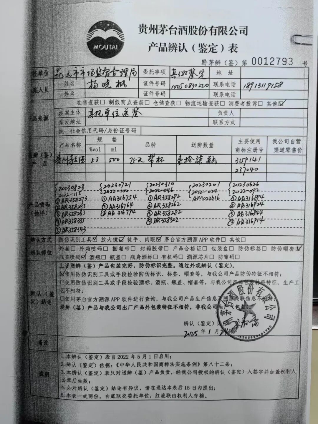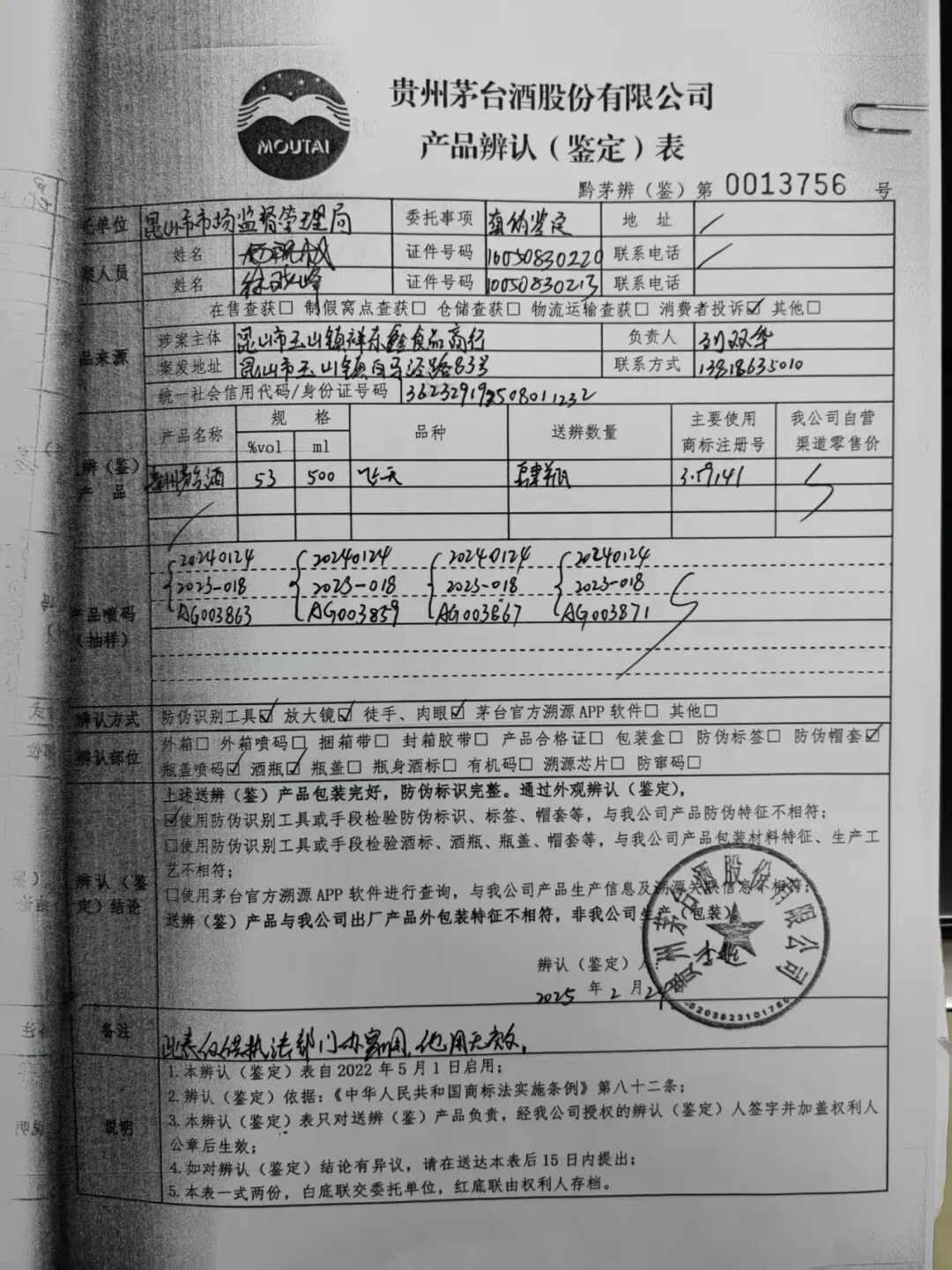 2025Äê1ÔÂ23ÈÕ£¬êËÏÈÉúÀ´µ½À¥É½ÊÐÊг¡¼à¹Ü¾Ö±íʾÆä¼°ÅóÓÑÂ½Ðø¹ºÂòµÄ34ƿę́¾Æ£¬ÆäÖÐÓÐ17Æ¿ÒÉËÆ´æÔÚÖÊÁ¿ÎÊÌâ¡£µ±ÈÕ£¬¸Ã¾ÖίÍйóÖÝę́¾Æ¹É·ÝÓÐÏÞ¹«Ë¾¼ø¶¨17Æ¿£¬´ÎÈÕ³ö¾ß¼ø¶¨±í£ºËͼø²úÆ·Óë³ö³§°ü×°ÌØÕ÷²»·û£¬·Çę́¹«Ë¾Éú²ú£¨°ü×°£©¡£