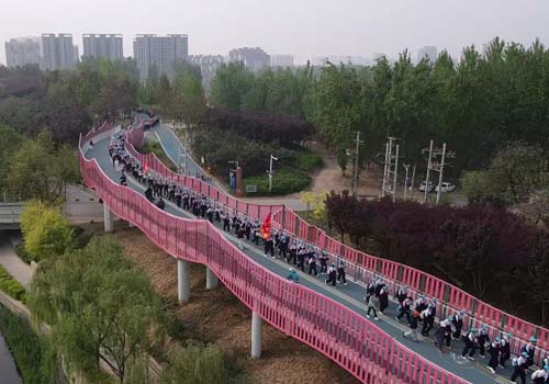 休整间隙,才艺展演轮番上演,歌声、笑声、欢呼声此起彼伏,为漫长征途注入无限活力;返程途中,同学们自觉清理沿途垃圾,践行“无痕远足”理念,用实际行动守护绿水青山,彰显河外附中学子的文明素养与环保担当。从晨光熹微到暮色将至,十余小时的跋涉,不仅磨砺了学生的体魄,更锤炼了他们的意志,让每一位参与者都在行走中感悟成长,在坚持中收获力量。