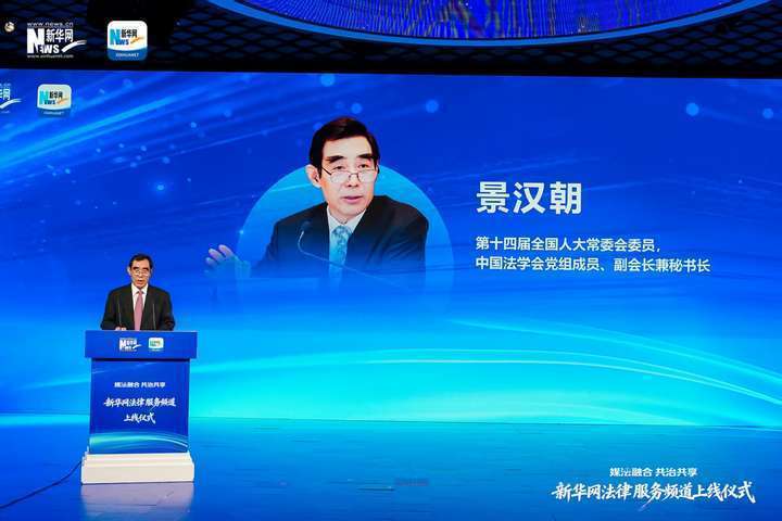 第十四届全国人大常委会委员,中国法学会党组成员、副会长兼秘书长景汉朝出席并致辞。他对新华网法律服务频道上线表示祝贺,向长期关心支持法治建设与法治宣传的各界人士致谢。景汉朝指出,要深入宣传法治中国建设成就,彰显中国特色社会主义法治道路优越性,在法治热点事件中坚持客观、理性、专业导向,营造尊法、学法、守法、用法的良好氛围。他强调,“媒法融合”是时代发展趋势,法律法学与媒体深度融合必将形成1+1>2的聚合效应,更好服务国家治理体系建设、满足人民群众法治需求,以新起点共同谱写法治宣传事业新篇章。