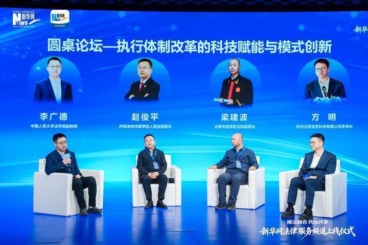 在由中国人民大学法学院副教授李广德主持的《执行体制改革的科技赋能与模式创新》圆桌论坛上,呼和浩特市赛罕区人民法院院长赵俊平、太原市迎泽区法院副院长梁建波等嘉宾围绕科技赋能司法、创新执行模式等议题展开交流探讨,为法治建设与数字治理融合发展建言献策。